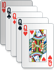 This hand is made up of 4 cards of the same value (e.g. 4 Queens). If more than one player has Four of a Kind the highest value Four of a Kind would win.