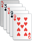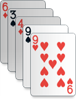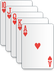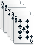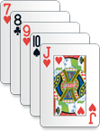 A combination of both a straight and a flush. The cards must all be of the same suit and they must run in value (e.g. 5,6,7,8,9). If more than one player has a Straight Flush, the player with the best Highcard wins.